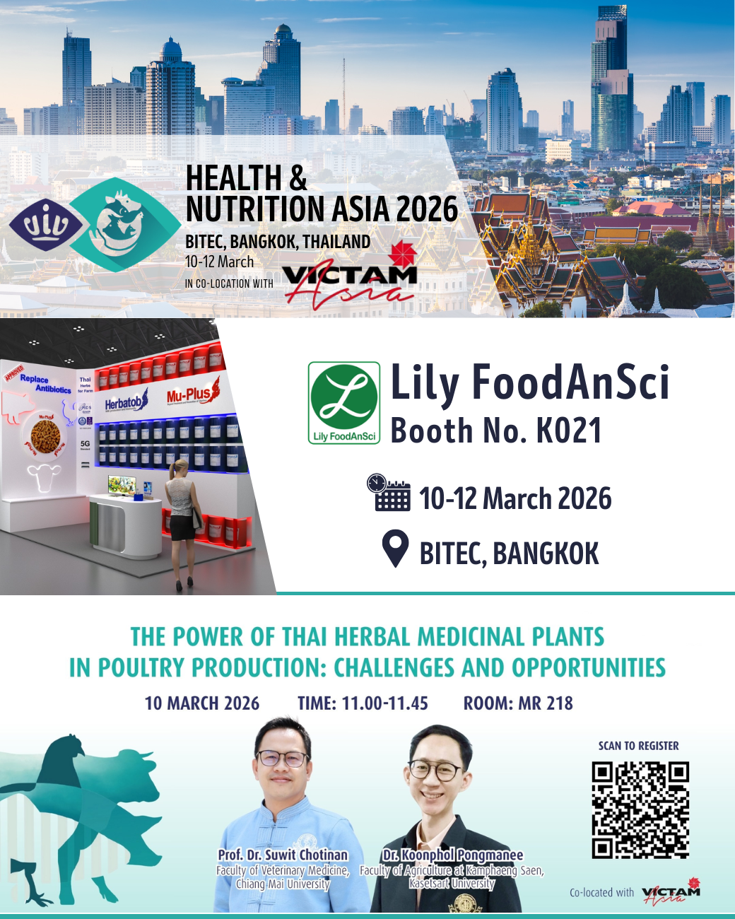 บริษัท ลิลลี่ ฟู้ดแอนซายน์ จำกัด ขอเรียนเชิญท่านเข้าร่วมงาน VICTAM 2026 ระหว่างวันที่ 10-12 มีนาคม 2569 ณ ศูนย์ประชุมไบเทค บางนา